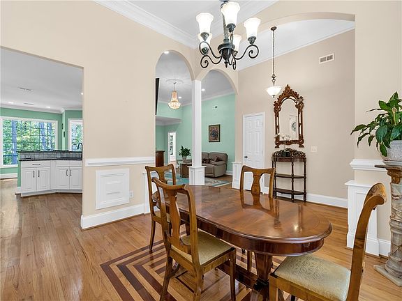 Nestled in a quiet setting with two combined lots, this gorgeous custom home built in 2008 is updated and move-in ready. Seasonal mountain views! Each room is perfectly proportioned, bathed in light and matchlessly appointed. This one level home features a spacious great room accented by soaring ceilings, hardwood floors and beautiful crown molding. Leading off the great room, there is is a cozy sunroom that is the perfect place to enjoy your morning coffee or evening beverage. For additional outdoor living, a large deck runs across the back of the house. There is also another lower level stone patio. The chef's kitchen is highlighted by a designer tile backsplash, Granite counter tops, hardwood floors and a lovely breakfast room. Entertaining a crowd is easy in this home with the wonderful open flowing spaces. Next to the foyer is an elegant dining room with floor to ceiling windows and an office/bedroom with a half bath. The private master suite is spacious with his and her walk-in closets, dual vanities and a large modern frameless glass walk-in shower. Two other guest bedrooms share a private wing with two full baths which is perfect for when friends and family come to visit. The roof was replaced in 2018 with solar panels. The HVAC was replaced in 2024. This low maintenance home is the perfect place to begin a lifetime of memories at Keowee Key. Simply perfection.