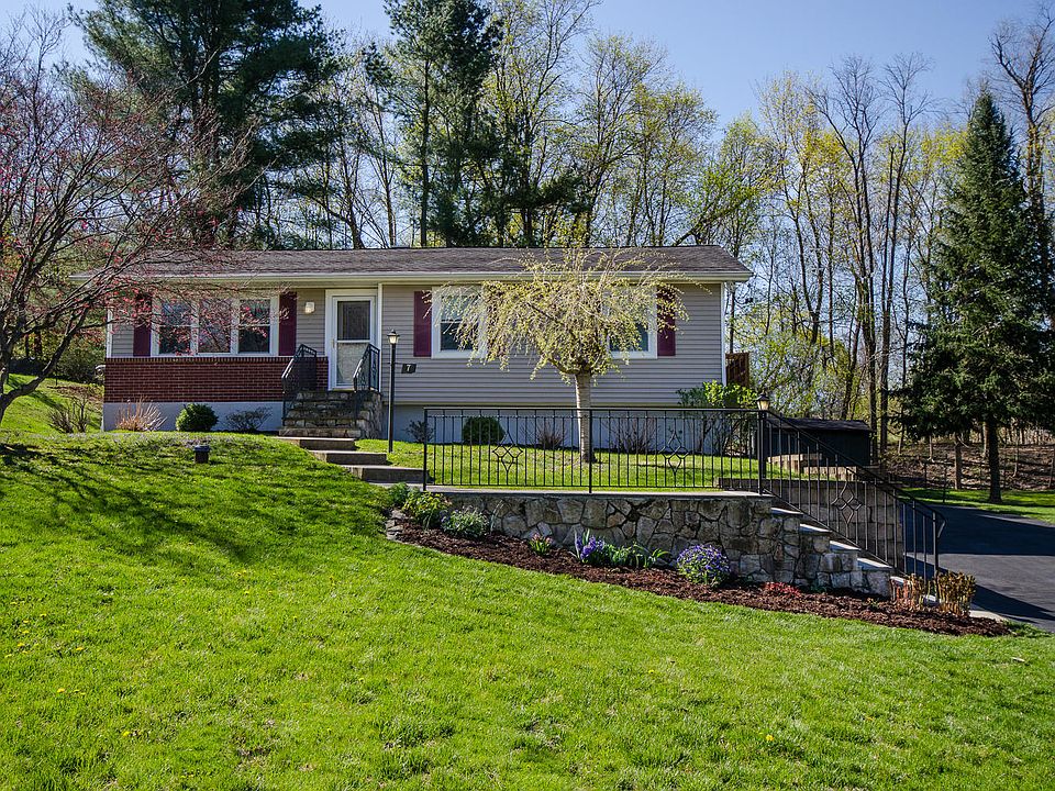 Beautiful cozy ranch,completely renovated in and out, with only the best and most efficient mechanics,decor and amenities. Better than new. Set on quiet country culdesac. Sliding glass doors to balcony off master bedroom.Large back deck from kitchen. Two rooms downstairs family room and den or office. Ample storage. Pellet stove. A high energy efficient home very low utility bills. All new kitchen with granite, tile and top of the line appliances we have so much more to offer. all this and a great location too.