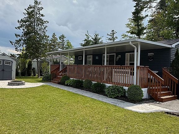 Welcome to 7 Nipagon Cir, a remarkable 2015 Northlander cottage in the desirable Parkbridge's Country Life Gated Resort. This charming property features two cozy bedrooms and a convenient pull-out sofa, accommodating up to 8 guests, making it perfect for family getaways or entertaining friends. The outdoor space is designed for relaxation and enjoyment, featuring a beautiful stone fire pit set in patterned concrete, a utility shed for added storage, and an irrigation system to keep your garden lush. Just steps away from the swimming pool with guest parking and only a 5-minute walk to a private beach, this location offers both convenience and leisure. The community is vibrant and active, with access to five pools (indoor and outdoor), tennis courts, mini-golf, and a recreation hall for events, ensuring there's always something to do. Plus, with local shopping, a new arena, and a library nearby, everything you need is within reach. Opening: Friday, 25 April 2025 - Closing: Sunday, 16 November 2025. The 2025 seasonal site fees are competitively priced at $6,420 + HST, which includes access to all amenities, gated car entry, and exclusive beach access. This property is not just a home; it's a lifestyle choice. Schedule a viewing today and discover the charm and tranquility of this beautiful cottage! listing information