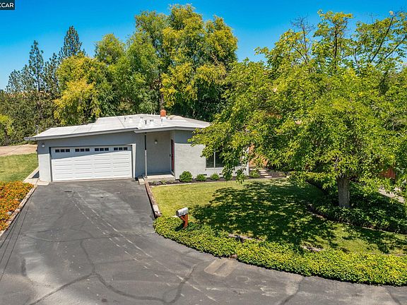 Sunday OPEN HOUSE 07/23 11:00 AM till 1:30 PM - Single level home in child friendly cul de sac. Large country kitchen & big dining opening to game room and separate living room. Bedrooms are large. Primary bdrm. suite opens to covered deck with beamed covered ceiling and skylights. Walk in closet. Bath has dual shower heads. New carpet throughout. Designer paint and lighting. Brand new quartz counter in kitchen. Oversized picture windows Abundance of natural light. Inside laundry room with wash up sink and counter. Great VIEWS of Mt. Diablo and Las Trampas. A HAPPY HOME. Heavy duty workbench, custom cabinetry, overhead storage in garage Private, secluded level lot with towering shade trees, fresh landscaping, aggregate patio. Complete auto sprinkler system. Large separate side yards. Elevated front yard. Ready for garden, bocce court, and large pool site or room to build ADU. Fabulous ambience. Super close to Monte Vista, Los Cerros and Green Valley schools. Oak Hill Park and lake moments away. Desirable and rare home. Great value. Compelling Wow factor. Update to taste. Reports in file. Ready to move into and enjoy. HUGE level LOT many uses. SHOW ANY TIME