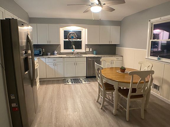 3 BR 1 1/2 bath open concept ranch. Finished heated/cooled basement with small additional bedroom, two office spaces, built in cabinets , throughout, large laundry room, wood burning stove. New vinyl plank floors 2019. New kitchen 2019; shaker white cabinets; granite counter, vinyl plank floor, stainless. Crown molding in living room; newly painted spaces. Upgraded electric panel. Updated windows and Central air HVAC 2010, under warranty through 3/2020. Large Shed (Approx 10x12 ); salt water pool; wooden swing set; huge stand up Attic runs full length of house . Appliances including Full freezer included