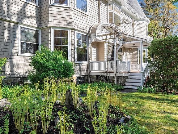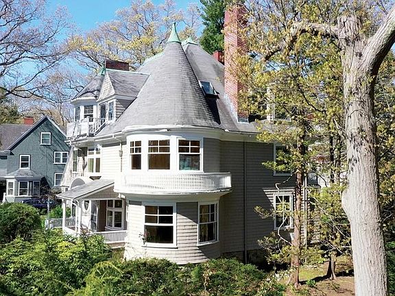 Newton Highlands: Set on a corner lot with views of Crystal Lake, The Peabody-Williams House is historically significant. The building retains its original character and is an important example of Shingle style architecture. Wood carvings and cabinetry are the work of Andrew Lees. Displayed details include gracious rooms, high ceilings, 9 fireplaces, stained glass, and pocket doors. Many windows provide an abundance of natural light. The first floor features a grandiose entry hall with fireplace leading to a double parlor living room and an elegant dining room. The kitchen was renovated in the mid 1990's and has ample cabinet and counter space. Finished 3rd floor game room with vaulted ceiling, FP & skylight. High Efficiency gas heating system. Located in the Mason Rice school district, this magnificent property affords easy access to shops, restaurants, and MBTA station. A preservation easement identifies features of the property that must be preserved.