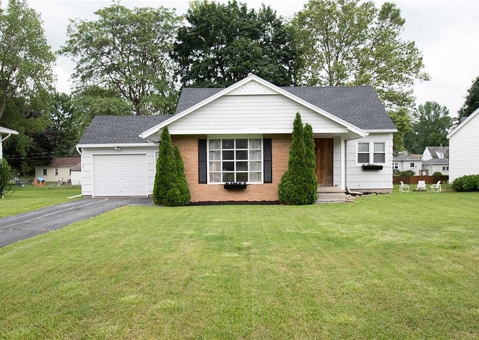 Beautiful 4 bedroom cape, 1st floor master bedroom newly renovated, sprawling oak kitchen fully applianced, hardwood floors, 2 bedrooms up with full bath, walkout basement, attached garage, sliding glass door to back yard. Roof new 2017, exterior just painted! Seller to only provide permits currently on file with the Town Of Gates.