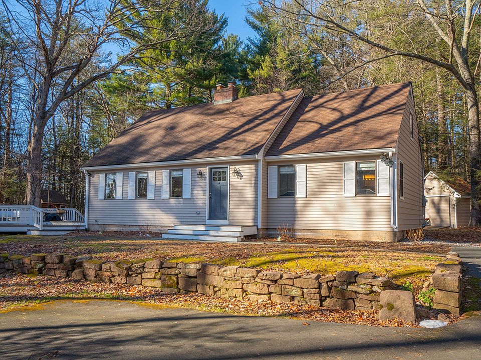 Welcome to your own private oasis! This charming Cape Cod home is nestled on a beautifully secluded lot along a quiet residential street, offering the perfect blend of tranquility and convenience. The open floor plan invites an abundance of natural light, highlighting the gleaming hardwood floors that flow seamlessly throughout the home. The spacious living room, complete with an inviting gas log fireplace, creates a warm and cozy ambiance-ideal for unwinding after a busy day. The first-floor primary bedroom provides a peaceful retreat, featuring a generous private bathroom for ultimate comfort and privacy. Oversized secondary bedrooms, also with hardwood floors, offer ample space, with one including a cedar closet for added storage. For those working from home, a dedicated office space provides a quiet and productive environment. The home also boasts a soothing sauna, perfect for relaxation and unwinding after a long day. Step outside to the expansive deck, ideal for both entertaining and relaxation, while the charming firepit adds a cozy touch, perfect for gathering with family and friends. Conveniently located just minutes from restaurants, shopping, and medical offices, this home offers the perfect combination of peaceful living and modern convenience. Don't miss the opportunity to make this private retreat your own!