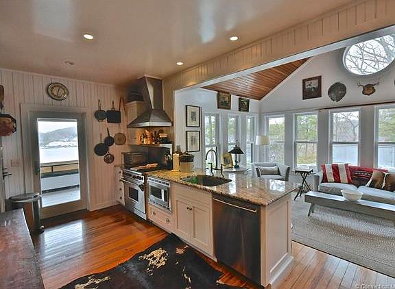 DIRECT WATERFRONT ON HAMBURG COVE!!! This warm & welcoming home has absolutely gorgeous views over the cove with a peaceful, private setting. You will fall in love the minute you walk through the door. This very handsome home is fully renovated while maintaining the charm of the original stone fireplace, wood ceilings, beadboard,...& wood floors throughout. The 1st level features a well-appointed kitchen between the sun room & family room/dining room. There is plenty of entertaining & family space both inside & out. The covered porch extends the entire length of the house & provides the ideal spot for outdoor dining, reading a good book, or just sitting, relaxing & watching the ever-changing views. The spacious stone patio with firepit, the gazebo & the land dock complete the outdoor spaces that are perfect for family, guests & outdoor fun. There are 2 en-suite bedrooms on the main level & the entire upper level is the primary bedroom suite with glorious views out every window, a large bath & cozy sitting/TV area. Perennial gardens, are established, drought resistant and low maintenance and were planted to attract bees, butterflies and hummingbirds. Hamburg Cove is known as a safe anchorage to serious boaters & a popular boating destination. Hamburg Cove is part of the Eight Mile River which flows downstream through the Cove and into the Connecticut River and is made up of two coves, the Inner Cove and the Outer Cove. Just 7 minutes from town center & between Boston & New York.