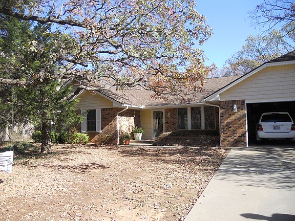 1 1/4 acres with lots of trees located on a quiet cul-de-sac. 2051 sq ft with 4 bedrooms and 2 1/2 baths. Move in ready. Spacious updated kitchen with beautiful granite and marble backsplash. Formal dining room. Ceramic tile flooring in kitchen, laundry room, entrance, hallways, and bathrooms. Laundry room with sink. Pella vinyl windows installed 2007. Security system. Ceiling fans in most rooms. 5' high fenced backyard. 2 car garage. Undeveloped land behind property. Grove school district. Treehouse in back yard. Wonderful neighbors. Shawnee, OK