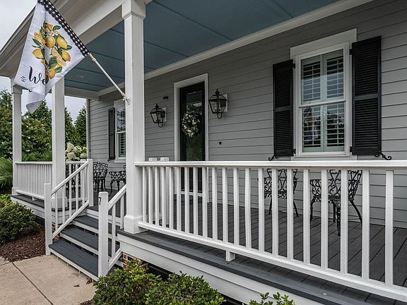 HUGE PRICE CORRECTION! Custom "Savannah Row Home" in picturesque Chatham in Flowers Plantation. Close to shopping and schools, yet tucked into a quiet gated neighborhood with special amenities including 2 firepits and communal seating. Rocking chair covered front porch is a nod to Charleston. Enter into an open living/kitchen area with heart of pine floors, custom cabinetry, high ceilings and marble topped counters. Other extras include walk in pantry, custom butcher block island and gas range. Dining room is separate and can also be used as office or den space. Living room has welcoming gas log fireplace. 1 story living provides many options - primary plus guest bedroom and 2 full baths and laundry all on main floor. Upstairs are 2 more bedrooms and full bath, plus attic storage. Bonus with separate mini split is over garage - tons of options for craft room, workshop, finished storage. Outside is fenced area with patio, screen porch and even outdoor shower! All appliances and wall mount tvs convey.