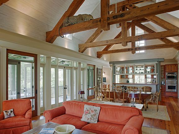 This distinctive home and guest cottage were designed by the renowned Lowcountry architect, Jim Thomas, who carefully crafted this imaginative residence with character, charm, and whimsy positioned on 2.47 acres on Betsy's Pond. The close-up views of the pond with its astounding birdlife and long views of the tranquil salt marsh, Chechessee Creek and the more distant Colleton River provide hours of pleasure. With the combination of wood shingles, authentic tabby, metal roof and traditional Southern charm, this compound is an inviting residence.