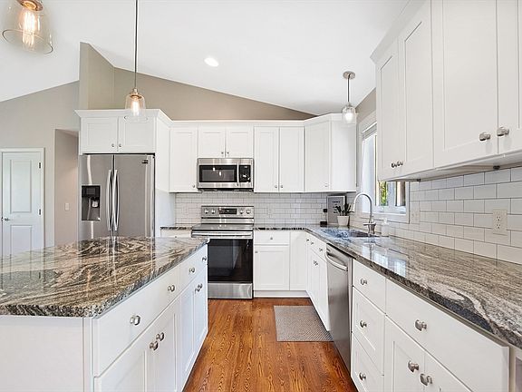 - Features: Cathedral Ceiling(s), Flooring - Hardwood, Dining Area, Pantry, Countertops - Stone/Granite/Solid, Kitchen Island, Deck - Exterior, Exterior Access, Open Floorplan, Recessed Lighting, Slider, Stainless Steel Appliances, Lighting - Overhead
