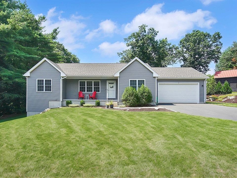 This 2018 contemporary home has flair and style. Enter into the central room of the home, where a cathedral ceiling harbors the living room, kitchen (with stainless appliances and granite countertops), pantry, and dining area. To the right is the primary bedroom (also w/ hardwood floors), 2 double closets & its' own bath with 2 sink granite vanity. The laundry, a mud room area, and entrance to the large two-car garage also live on this side. To the left of the central room are 2 bedrooms w/ a full bath..also w/ granite. Below, is the amazing 814 sqft of finished living space w/ daylight windows & slider out to a large private patio, private room for home office/bedroom/guest room, a full bath w/ granite vanity, & a bar & crazy amount storage! Do not miss your opportunity to live in beautiful Belchertown. This will not last long, so we will see you at the closing!