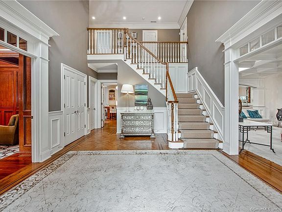 Grand scale, comfortable proportions & a thoughtful layout define this timeless Colonial set on a landscaped, level, acre on one of Westport's premier Old Hill streets. Finished on four floors, with 7 bedrooms & 7 full/2 half baths, this home was designed for easy living with all the extra spaces and luxurious details one would expect at this level. A soaring entry foyer, custom wood-paneled office, open eat-in kitchen w top of the line appliances, 2 Dishwashers & walk in pantry, oversized family room, expansive dining room, light filled living room & cheerful sunroom complete the first floor. Upstairs is a sumptuous Master Bedroom Suite with fireplace & separate sitting room, custom walk in closets (incl a dedicated W/D), decadent bath w steam shower & a soaking tub Down the hall are four additional bedrooms, all en-suite, a large recreation room & laundry room. The third floor offers a 6th bedroom with full bath & add'l living space - currently outfitted as a gym - with a Peloton bike that comes with the house! The fully finished walk-out lower level is a destination unto itself with a 7th bedroom, full bath & multiple recreation spaces for work & play. Outside, an oversized bluestone patio overlooks the lushly landscaped full acre property with heated Gunite pool/spa w safety cover & fence. Heated 3 car garage & full house generator. Privately situated on a celebrated Westport street, in close walking distance to shopping & cafes and minutes to train & beach.