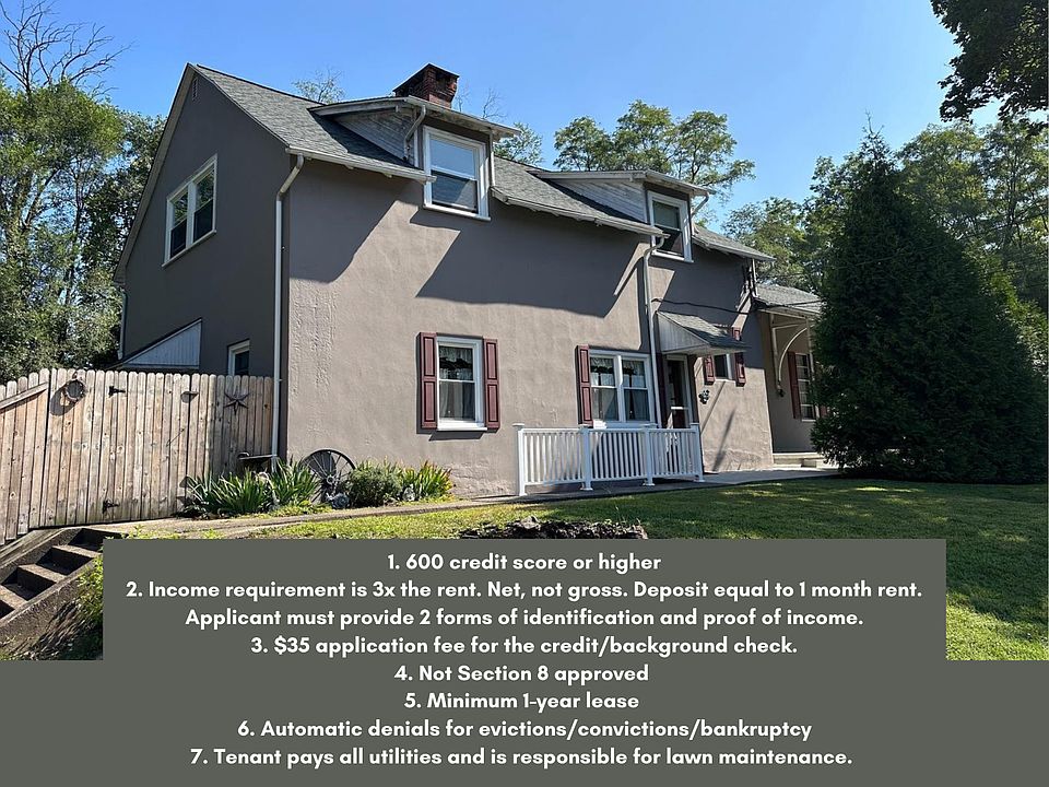 Charming 2 bedroom apartment in Douglassville. This building is located on a very quiet dead end street and was once the old train station. For outdoor enthusiasts - the Schuykill River Trail passes directly behind the property for safe and easy outdoor adventuring. Rental Requirements: 1. 600 credit score or higher 2. Income requirement is 3x the rent. Net, not gross. Deposit equal to 1 month rent. Applicant must provide 2 forms of identification and proof of income. 3. Tenant pays application fee for the credit/background check. 4. Not Section 8 approved 5. Minimum 1-year lease 6. Automatic denials for evictions/convictions/bankruptcy 7. Tenant pays all utilities and handles lawn maintenance. PETS: If you have a pet(s), there is a $250 nonrefundable pet fee plus $50 per pet per month for dogs over 25 pounds. Small dogs under 25 pounds are $25 per month. Aggressive breeds are not allowed. 2-dog limit. No cats. Proof of vaccinations required plus a letter from your current residence confirming your pet caused no damage. For people with an ESA animal: Please note an ESA certificate for that animal must be accompanied by a formal letter from your mental health care provider stating that an ESA has been prescribed for you that's dated in the last 12 months. That letter must be on professional letterhead and have a landline phone number for the provider and a physical address. Rental Requirements: 1. 600 credit score or higher 2. Income requirement is 3x the rent. Net, not gross. Deposit equal to 1 month rent. Applicant must provide 2 forms of identification and proof of income. 3. Tenant pays application fee for the credit/background check. 4. Not Section 8 approved 5. Minimum 1-year lease 6. Automatic denials for evictions/convictions/bankruptcy 7. Tenant pays all utilities and handles lawn maintenance. PETS: If you have a pet(s), there is a $250 nonrefundable pet fee plus $50 per pet per month for dogs over 25 pounds. Small dogs under 25 pounds are $25 per month. Aggressive breeds are not allowed. 2-pet limit. Proof of vaccinations required plus a letter from your current residence confirming your pet caused no damage. For people with an ESA animal: Please note an ESA certificate for that animal must be accompanied by a formal letter from your mental health care provider stating that an ESA has been prescribed for you that's dated in the last 12 months. That letter must be on professional letterhead and have a landline phone number for the provider and a physical address.