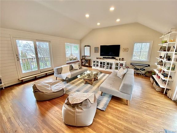 Walk or bike to the beach, parks and village from this bright and refreshed Rowayton contemporary colonial. Extensive updates include a new kitchen, powder room, and completely rebuilt exterior with new roof, windows, architectural garage doors and maintenance-free hardieboard siding for worry-free efficient living. 4 bedrooms on the upper level are complemented by a large lower level guest/inlaw suite with full bath and workshop/gym/mudroom. The main level features an office and family room with soaring ceilings, reading nook, Ipe deck and fireplace with energy efficient insert. Sited on a quiet and convenient cul-de-sac, the professionally landscaped yard, patio, magical treehouse and rope swing are ready for fun and adventure in the center of one of Connecticut's most coveted seaside towns.