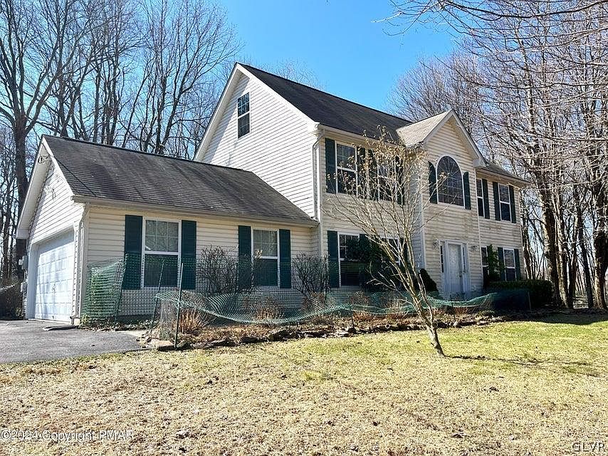 Spacious 3 bed/2.5 bath COLONIAL w/ attached 2 CAR GARAGE & PRIMARY SUITE for sale in Mount Pocahontas! This charming home is nestled on a gorgeously landscaped 0.51 acre lot! As you enter the foyer you are greeted by an open center hall leading to the main living room, separate family room, & OPEN CONCEPT kitchen & dining! Convenient 1st floor powder room! 2nd fl PRIMARY SUITE features a soaking tub & separate shower! Ample storage in the unfinished 3rd floor - or finish for extra sleeping quarters, hobby room, or at-home office! Relax on the patio & enjoy the surrounding woods! A short stroll to the Mount Pocahontas outdoor pool, tennis court, & basketball court! Minutes to hiking, biking, rafting, Hickory Run State Park, & more! See today!