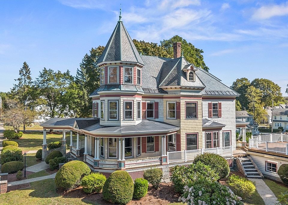 An irresistibly charming wrap-around porch welcomes you to this iconic intown Victorian, brimming w/ history & character. Inside, handsome wood floors, rich original woodwork, stained-glass windows, pocket doors & a slate roof w/ copper edging highlight timeless craftsmanship of a bygone era. Host dinner parties in the sun-drenched dining room w/ built-in cabinet & convenient pass-through to a 9’ butler’s pantry or gather on the expansive deck overlooking the manicured yard. This versatile 5 BR, 3¼-bath home features a 3rd-floor guest suite & a rear staircase leading to an in-law suite w/ kitchenette, bath, bedroom & den—retain as separate space or seamlessly incorporate into the main home. Expansion potential abounds in the sprawling unfinished attic, while the 4-car garage & walk-out basement provide excellent storage & workshop space. Set on nearly 1 acre in a sweet n'hood, this rare offering combines easy access to vibrant downtown shops & eateries, major routes & Highland Commons.