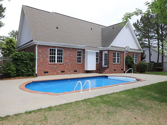 Move in Ready! Still time to enjoy the summer in the backyard in-ground pool (new liner 2017, pump 4 yrs old) w family/friends! Spacious 5 bed, 3 bath home on quiet cul-de-sac, located near Pinehurst Lake. Fresh paint/new carpets. Split bedroom floor-plan. Foyer opens to Dining/Living room w gas fireplace. Kitchen upgraded w granite counter-tops, sink & disposal; pantry; eat in area. Laundry room has large walk in pantry plus wall shelves. Main level- Owners suite with lg walk-in closet, jetted tub, stand alone shower, private commode; and 2 bedrooms and bath. Upstairs- 2 bedrooms and another full bath. One could be a Bonus room. Main living spaces are hardwood; tile in bathrooms. Be amazed with spacious backyard-private fencing, pool, mature landscaping/ irrigation system front & back.Enjoy days and evenings in the private fenced backyard, (which is SW sun exposure), where there is also a concrete slab off pool for grilling/sitting around the luxurious pool. Propane tank line hooks up to your grill! There is a plastic storage unit in back with pool supplies, cleaning items that will convey. Gas logs in fireplace replaced 2018. All appliances plus refrigerator in garage convey, garage upper storage rack and built ins stay. W/D hookups.
