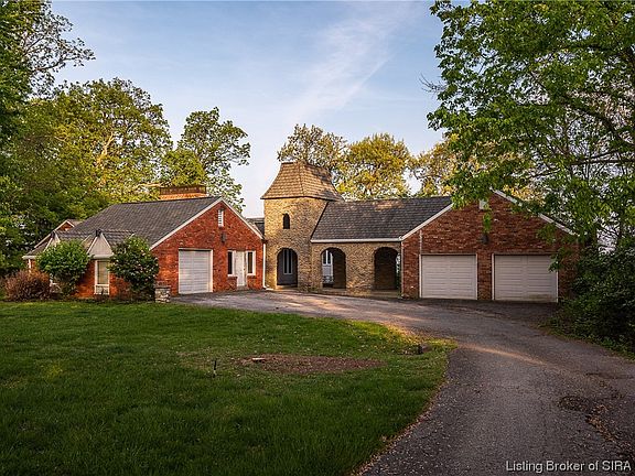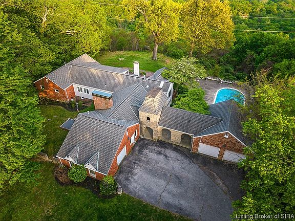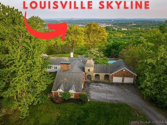 Perhaps one of THE BEST locations to take in INCREDIBLE Breathtaking PANORAMIC Views of the Lousiville Skyline AND southern Indiana! Established FLOYDS KNOBS Altawood, AWARD WINNING FC SCHOOLS. TOTALLY PRIVATE setting, NEARLY 2 Acres tucked away, this ONE of kind beauty has so much to offer! GORGEOUS STONE Archways, Bell tower, Brick, Wood exterior, Windows ABOUND, TONS of Character & CHARM! Potential GALORE to make this your own! 5 Beds, 3.5 Baths, Nearly 5000 TFLS! IN-GROUND POOL, EXTENSIVE PATIOS & COVERED patio, to enjoy the quiet setting, MATURE TREES, POOL, and VIEWS! OPEN Hearth Rm w/Brick FP, Slate Tile. Liv Rm w/Arches, FP (Newer Carpet) WINDOWS across entire back of home overlooking SKYLINE VIEWS and POOL! Cozy Kitchen, PANTRY, ALL APPLS STAY! Brick serving Bar, Lrg Dining Rm w/Windows HARDWOOD, Glassed Sunroom, flows WELL! Entertainers DREAM! Very LARGE Rooms, Master Suite HUGE, Built-ins, Private patio entrance, Master Bath REMODEL 2022! Bed 2 Lrg w/Built-ins, Lrg Hall Bath w/jetted tub, Sep.Tile Shower. Beds 3/4 plus OFFICE on Main floor! FINISHED walk-out/up Lower Level TONS of potential, Open Rec Rm UPDATED NEW FLOORING, Bar, 2nd Kitchen, Laundry, Bed 5, FULL BATH too! Lots of NATURAL LIGHT! Replacement Windows, Home UPDATED HVACS 2018-2020, NEW CARPET 2019, Basement NEW PAINT/Flooring 2020, 3 PLUS car garages, 2 Car Heated, LOW UTILITIES, and MORE!! You’re gonna LOVE the location too, only 10 min to Louisville!Sq ft & rm sz approx.