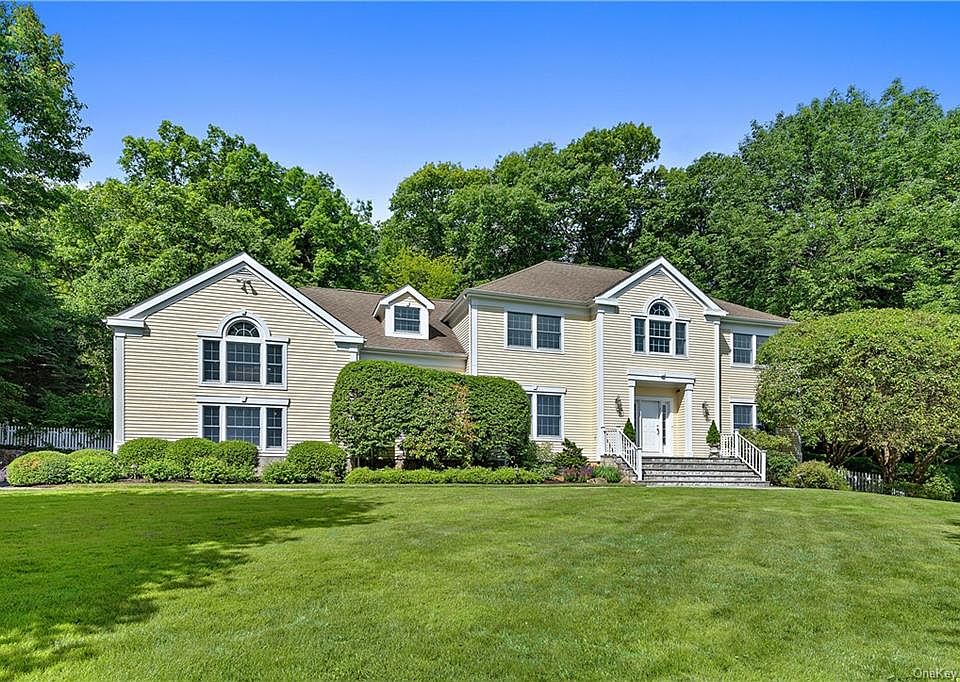 First time on the market. This light-filled Colonial with double height entry offers relaxed living amid peaceful surroundings. The first floor includes a formal living and dining room, private office/library and family room with fireplace and wet bar. The kitchen opens to a large fenced-in backyard with a retractable awning for pleasant shade. A first floor bedroom with full bath provides a nanny's suite with steps up to an expansive rec room over the 3-car garage. The second floor hosts a master suite with a steam shower and jacuzzi tub that overlook the backyard plus three bedrooms and two full bathrooms. The unfinished lower level has high ceilings, windows on two sides and walk-out sliding doors. Situated on a quiet cul-de-sac and minutes from downtown Armonk, this lovingly maintained home sits on over an acre of lush grounds with koi pond and plenty of bird watching.