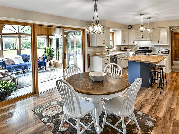 Elegant and captivating! This 2 story home has all the right spaces and an awesome layout! The kitchen is bright w/ tons of cabinets, butcher block island, huge pantry area w/desk and is open to lovely family room w/fireplace. Off the dining area is a charming 4 season room w/tons of windows to enjoy the views of the stunning fenced in yard. Hardwood Flrs, First Fl Laundry, a formal dining rm & another living room top off the 1st floor. Upstairs you'll find a massive master ensuite, 3 other large bedrooms & another full bath. LL is beautifully finished w/ another half bath. Many updates!