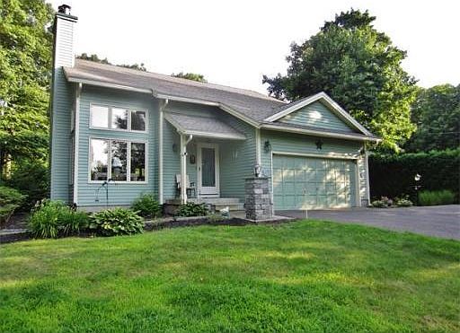 Enjoy quiet living on a cul-de-sac in the Turkey Hill section of Belchertown. This house has three bedrooms (two with walk-in closets), two full baths, a large kitchen, and a loft that overlooks a living room with a fireplace and a cathedral ceiling. Spend your evenings on your front porch or back deck. You will have a view of your long front yard that is a great place for the kids to go sledding in the winter. This house also has a generator, a full basement and a two car garage. This is a great neighborhood for taking a walk or a bike ride.