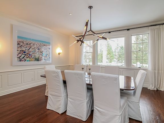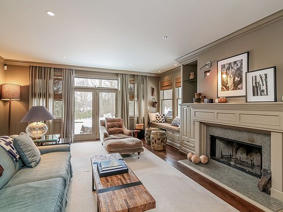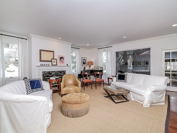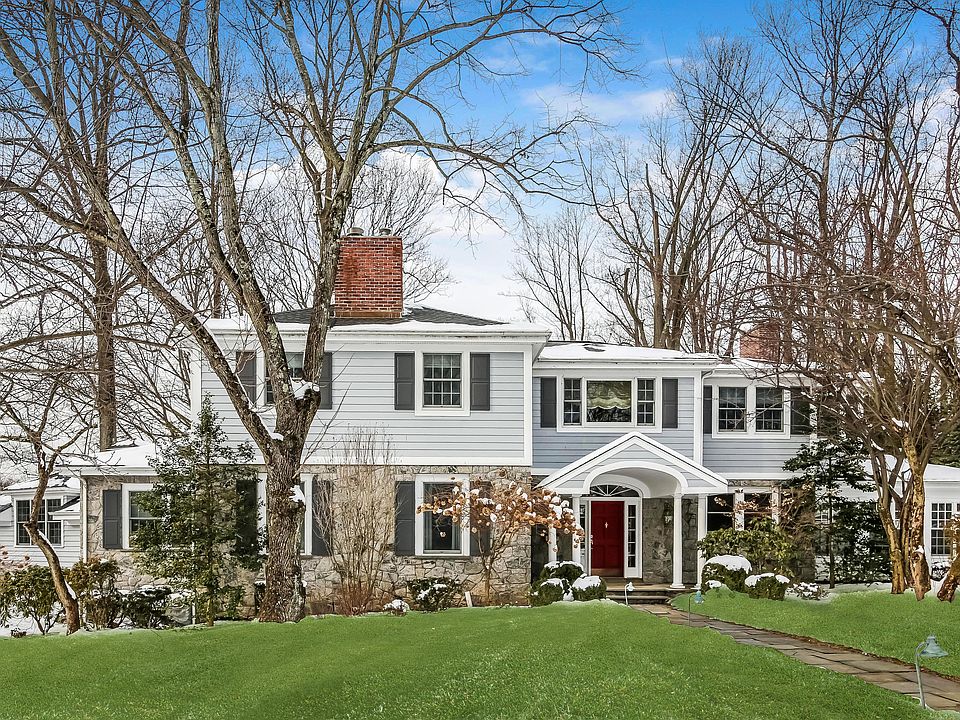 Fabulous Colonial on .73 beautifully landscaped acres with room for a pool. Built by Chillmark builders and later renovated using the architects Allisberg Parker. Bright sunlit home perfect for entertaining both inside and out. Beautiful entry hall with circular stair. Large rooms include the living room with fireplace, library with custom cabinetry, paneled dining room, office, kitchen with Caesar stone countertops, island and banquette, family room with fireplace. Doors to backyard from the family room, library, kitchen and office. the second floor has a master suite with bath plus three additional bedrooms and two baths. the lower level has a guest or nanny's room with bath, playroom/gym, second family room, full bath and laundry. the two-car garage has been converted to an indoor basketball court with 25 foot high ceilings. 9-zone heat and AC. Radiant heat in garage and office. Walk to high school, elementary school, train, and village. August possession.