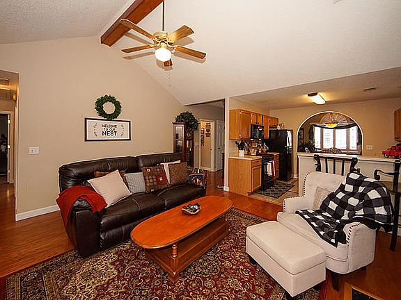 Open the door to engineered hardwood floors in this lovely well cared for home. The great room is open and spacious with wooden beamed cathedral ceiling and a wood burning fireplace. Kitchen is open and offers a breakfast bar and tile floors. The adjacent dining room features chair rail and a vaulted ceiling. Enjoy that morning coffee on your screened porch or deck. Three spacious bedrooms with the master having a tray ceiling and a huge walk in closet. New roof was installed June 2019. HVAC system is three years old. A well cared for home on a quiet cul de sac with a pond located at the end of the cul de sac. All of this and no HOA. Termite bond. Please read agent remarks.