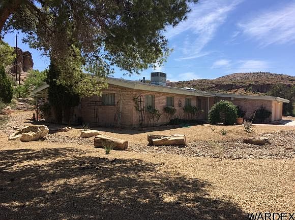 This is a truly One of a kind Beautiful home built on the side of a hill over looking Kingman Golf Course. Solid Brick Home with Lots of character! White-washed open beam cathedral ceiling with skylights. Spanish tile throughout home. Gorgeous Kitchen with cobalt color wooden cabinets, large isle,pantry, New Stove top/hood/ ovens. Used to be 4-bedrooms, now Two Master Suites!!! One suite has a bedroom/den/closet room. Finished Arizona room, wood burning fireplace. Attached 2-car garage and a detached golf-cart garage and storage. Lots of privacy and Gorgeous Views!
