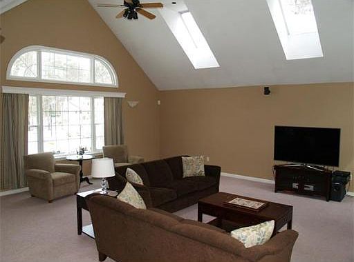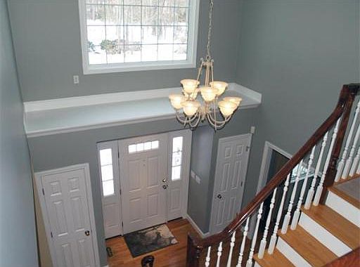 Grand two story foyer with palladian window and turned staircase welcomes you into this Contemporary Colonial. Formal dining room has tray ceiling, wainscoting and hardwood flooring. Kitchen with granite counters and island opens into spectacular Great Room with fieldstone fireplace, skylights and vaulted ceiling. Stately home office with built-in bookcases, wet bar and half bath. Upstairs has laundry for added convenience. Master has full bath with whirlpool tub and walk-in closet. Finished lower level with large family room, excess storage and additional closet space. Large back deck with screened-in gazebo overlooks private backyard set on conservation land. Adding to this quiet setting is its location in a small cul-de-sac neighborhood.