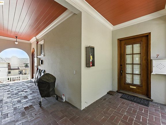 Welcome to 7 Panoramic Way a Julia Morgan treasure where timeless architecture meets everyday ease. This two-bedroom, one-bath flat also features a window-wrapped study and an updated eat-in kitchen with stone countertops, a gas range, dishwasher, microwave and stylish cabinetry that makes cooking or late-night snacking feel effortless. Original Douglas-fir floors, box-beam ceilings, and built-ins preserve the home's 1912 character, while oversized windows frame sweeping Bay views. Tucked into an intimate six-unit building just minutes from UC Berkeley, the residence offers shared laundry, secure bike storage, terraced garden patios, and flexible furnished or unfurnished lease options. Water and refuse are included, and the community remains smoke-free with a 12-month lease preferred. Come see why this hillside gem feels both professional in its pedigree and personal in its warmth you may never want to leave.
