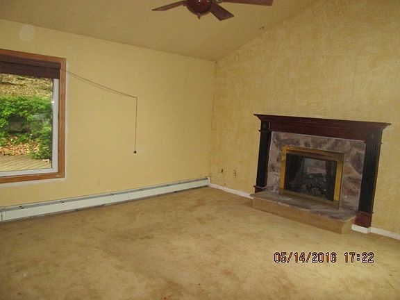 End unit is well maintained condo complex. Cathedral ceiling in living room with Fireplace, 2 BR, 1B pool and exterior maintained by HOA. Easy access with easy living!!! Some cosmetics needed!