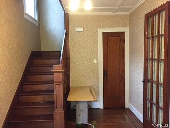 NEW LOWER PRICE - The charm of old world features greet you with coffered living room ceiling, enclosed porch, nice size dining room, extra room for a computer/office. Upstairs features full 2nd kitchen with stove and refrigerator. Enjoy French doors, wainscoting and large walk-in closet. Only your imagination is needed to make this a charming, comfy home.