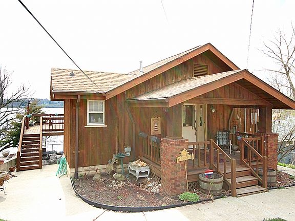 Lakefront home in basin 3 just across the water from Decatur Country Club...Wake up in the morning to a rising sun ... end your day with moon light on the wraparound deck, there's absolutely fantastic views! This 2 bedroom, 2 bath has 150 ft. of steel shore wall... Exterior of home is cedar and sealed in 2012. Roof and gutters replaced in 09... Garage roof in 08... Hot water heater replace in 13 Oak staircase as well as a second stairway (spiral)... Wood burning fire place...All appliances stay...Fenced yard...the new dock will be completed mid-August. This is a must see, priced right.