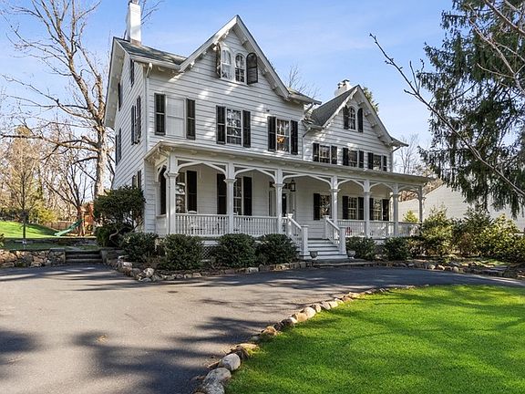 Enter this Beautiful 14 room Victorian Charmer Fall in love w/this .96 acre lot, landscaped with an abundance of privacy. This home features large rooms, high ceilings and fabulous finishes. High End gourmet EIK that leads to the family room and shares a fireplace. . French doors open to a Bluestone patio and BBQ. Master bedroom has en suite bathroom w/jetted tub and shower stall. 3 add'l bedrooms & main bath complete the 2nd fl space. 5th bedroom and bonus space with full bath located on 3rd floor. Next you will find a new salt water heated built in pool and grand size patio w/stone fireplace strategically positioned away from the main house creating a magical space for entertaining. 2nd floor fireplaces are presently decorative. New high velocity central air conditioning and heating. This can be your retreat just 1 hour from NYC with top rated schools.