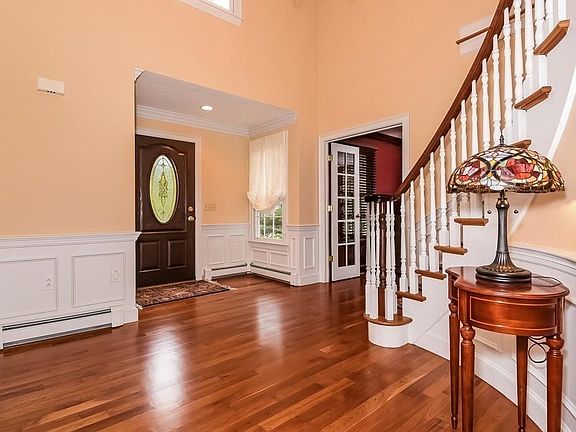 Traditional style stately colonial lovingly updated and maintained in desirable cul-de-sac! This property is everything you have been looking for starting as you enter this grand foyer with wainscoting and bridal staircase. 4 year young kitchen with granite, large island with expansive seating capacity, stainless hi-end appliances, pantry and two story eat-in area!. Offering gleaming cherry hardwood floors, formal dining room with dentil moulding and wainscoting, front to back family room with fireplace and French doors leading to private deck. Library/living room with gas fireplace, wall sconces, custom paneling, wet bar and gorgeous built-ins. Upstairs does not disappoint with Spacious master bedroom and master bath, three other large bedrooms plus full bath. Full basement waiting to be finished and 2 car garage! Welcome home....