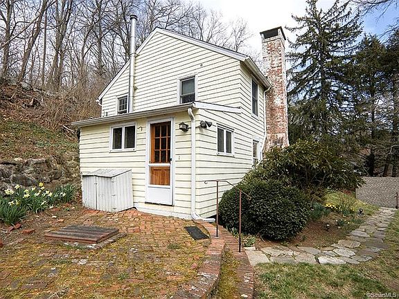 Adorable, charming and magical are the words that come to mind when you see this property and home. Quick walk to Branchville train station. This lovely property has best of both worlds: privacy, peaceful, quiet & serene yet less than 5 minutes from Rt 7 shopping. short drive to quaint downtown Georgetown. First floor is open floor plan so popular at this time.Large stone fireplace and wood beams add rustic charm. Fireplace is fitted with gas log set. First floor also includes a powder room & laundry. Second floor has 2 bedrooms & large full bath with claw foot tub. Top floor can be office, yoga, study flexible space as you look out at tree tops!Tax record indicates sq ft is 480 above & 420 below. What they consider below is the whole first floor. As you can see from photos that is clearly above grade. The back of house has utility room & powder room with laundry. Those 2 rooms have the hill on outside at the back. Town says the entire first floor is basement and below grade! (Trustee makes no claim to gas log working condition). Home is sold AS IS.