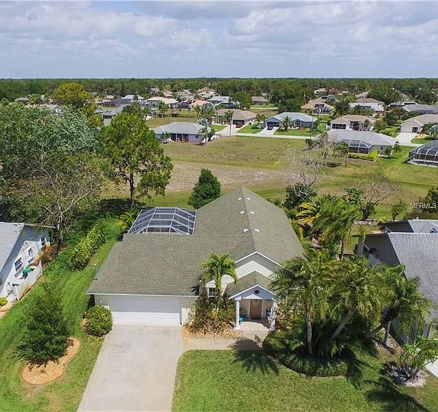 Tell your friends you live on Pebble Beach and they'll book the next flight! Don't forget to tell them your beautiful home is in a Premier Golfing Community in Florida. Adjacent to the popular Palms Course, they will still want to pack their clubs! The tropical landscaping and elegant columned entrance provide a gateway to your very own private retreat. Inside you'll be amazed at the architectural detail. The exposed vaulted ceilings, tile flooring, classic Florida archways, art shelving, and split floor plan create a unique flow of volume, space, and natural light. Pocketing sliding glass doors in the Great Room open to your screened lanai and sparkling heated pool, surrounded by upgraded decking. You have the best of all worlds with no backyard neighbors, a view of the course around the corner, and beautiful landscaping for extra privacy and enjoyment. Wake to peaceful and private views of the pool, framed by sliding glass doors in your Master Bedroom. Enjoy breakfast in bed or have a cup of coffee at the breakfast bar while you plan your day, and later relax by the pool after "roughing it" at a nearby beach or one of the 5 Community Golf Courses. The kitchen features wood cabinets and opens to the great room, creating the perfect space for entertaining your guests who will never leave! Impact windows and alarm system provide additional peace of mind, and the full pool bath on the lanai is icing on this decadent cake! Make Pebble Beach your address today and you will be the envy of all your friends!