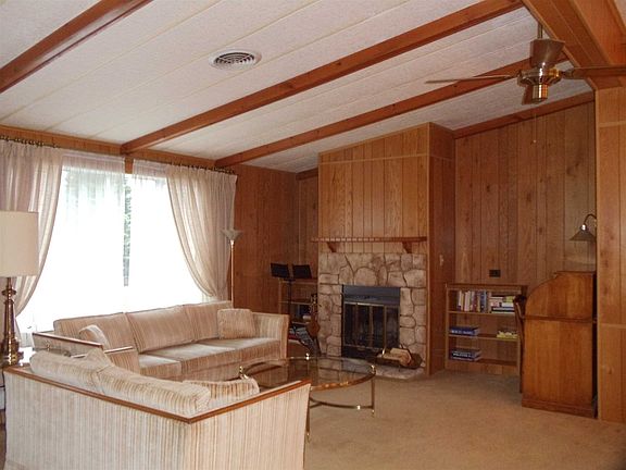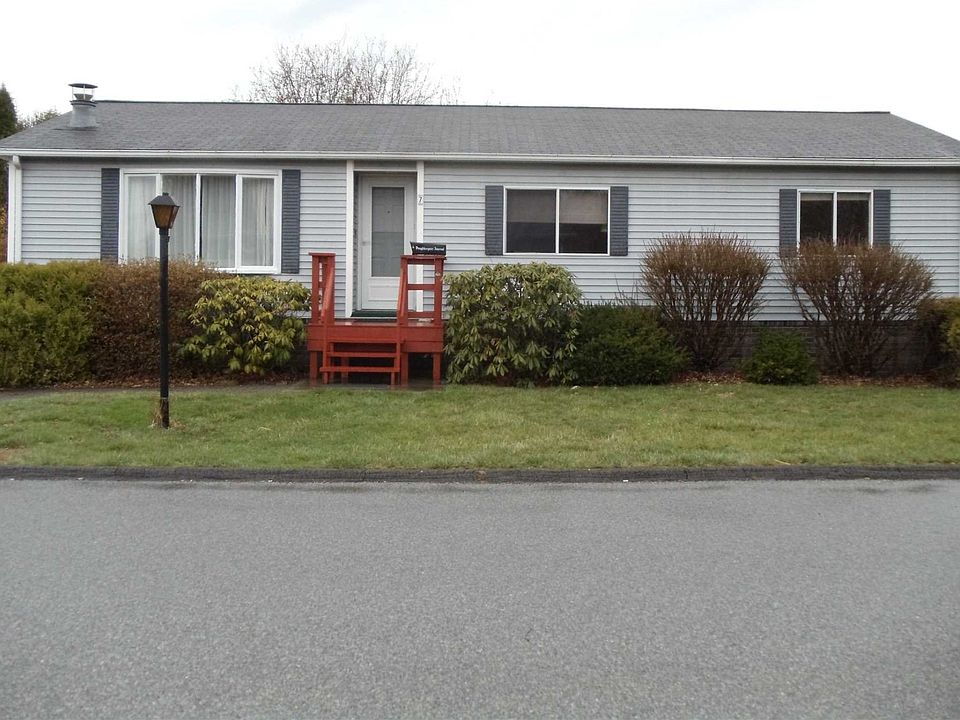 Light & Bright Home in Hidden Brook Estates Park. Large LR w/vaulted ceiling&fireplace. Dining area leads to Kitchen, slider doors to nice deck& yard w/pretty landscaping. Master BR w/private bath. Additional BR,full bath, laundry room. Newer Carpets.Blacktop driveway w/2car parking.Large Storage Shed. lot rent $424 covers garbage,water/sewer&road maintenenace.Owners maintain driveway & lawncare.Must see. Why rent when you can own this great home.