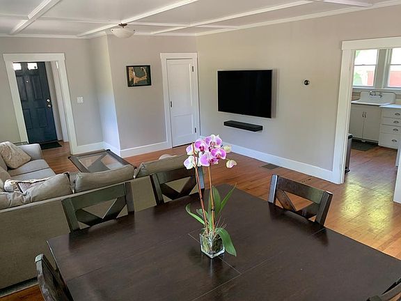 As you enter this ultra efficient home with a new staircase and living room closet you will notice the high ceilings, recent vinyl replacement windows and hardwood floors thru-out. The kitchen is clean, bright w/ white wooden cabinetry complimented by deep farmers sink w/ handy walk-in pantry & matching refrigerator and stove. The open concept dining room and living room have been freshly painted. This move in ready property has it all done w/ recent electrical wiring, chimney, plumbing, hot water heater, FHA heating system w/ gas heat, newly blown in insolation & recent central air. Newly added full access to attic for storage. The remodeled lower level offers 2nd full bath, 2nd bedroom, family room, new flooring and fresh paint throughout, workshop area, bonus room w/ sink, laundry hookup, cabinets, counter-top offering opportunity & space. This corner lot currently has parking for 3 vehicles w/space available for more if desired at rear of property. Minutes from multiple major comm
