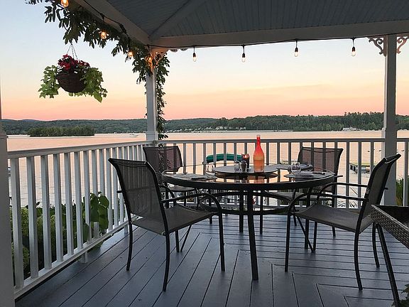 99 feet of lake frontage and Chapter 91 private dock. Town water, sewer, and natural gas. Spacious wrap around porch with fabulous views of the lake. Living room with gas fireplace, french doors, and views to the lake.