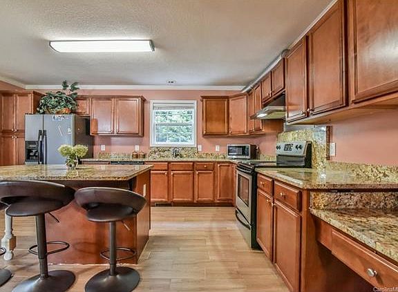 Updated off frame modular home has close range mountain views from its large covered front porch (32x10). You'll love cooking in this kitchen with tons of cabinets, granite countertops, an island and small desk area, plus stainless steel appliances. Beautiful tile in baths, hardwood floors through out and a lovely rock fireplace round out this wonderful home. Brand new well 10/2018. Enjoy the picnic area too and the level yard. Circular driveway.