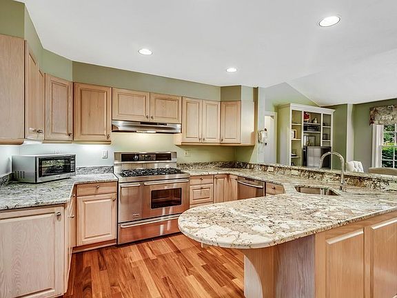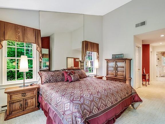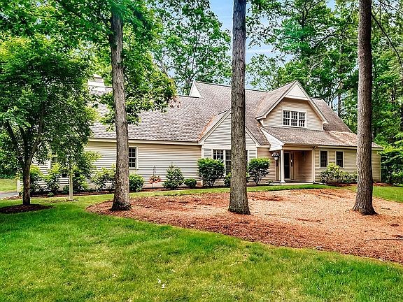 Spectacular stand-alone unit at Huckins Farm offers privacy and amazing vistas. A masterfully designed open floor plan lets in natural light from sunrise to sunset. Relax by the living room fireplace below a skylit cathedral ceiling. A generous dining room with bar sink connects to a 3 season porch facing horses in nearby pastures. The rear patio is surrounded by flowering plants and a stone wall. The kitchen was reimagined with granite counters, 5-burner range and 48" Subzero fridge. The adjoining breakfast room leads to a laundry room and attached 2 car garage. At the opposite end is the first floor Master suite with jetted tub, frameless shower and sinks in a quartzite counter, another lovely bedroom, and a full bath. Upper level's balconied family room adjoins a storage room. A second stair leads to an office. Pool! Clubhouse! Tennis courts! Equestrian center! All these amenities are included in this idyllic 294 acre community, rural in lifestyle, yet within easy access of Boston.