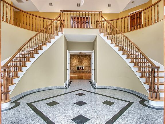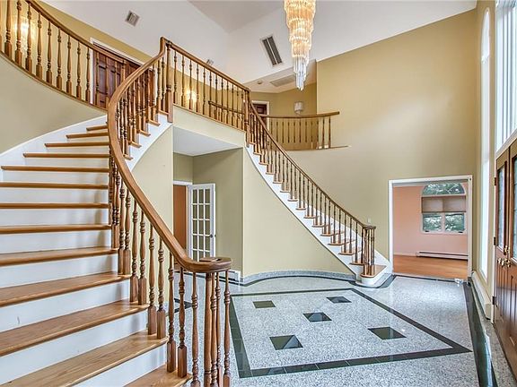 Spectacular brick colonial in one of Rockland County's most desirable areas, surrounded by parkland, close to transportation and shopping. Enter the double doors into the multi-level granite floored foyer with symmetrical sweeping staircases leading to the second floor. Ahead, French doors open into a sunken family room with a full wall brick fireplace. The grand living room with 12' ceilings and 5 large windows with semicircle tops is perfect for a large family.