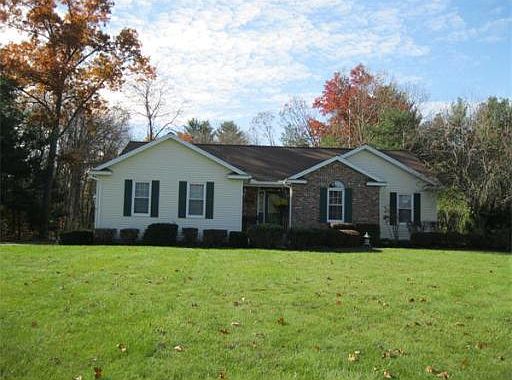 CUSTOM BUILT! PRISTINE CONDITION! PRIME LOCATION! PINE KNOLL ESTATES! Lovingly maintained 6 room brick and vinyl sided ranch set on a 1.2 ACRE manicured lot offering a PRIVATE BACKYARD! Ceramic tiled entry...soaring cathedral ceilings in great room with gas fireplace...gleaming maple hardwood floors...fully applianced maple kitchen with center island...large dining area with large windows overlooking the backyard...french doors lead to a 3 season porch...oversized master bedroom has deep tray ceilings & 2 large walk-in closets...2 ceramic tiled bathrooms...newer Kohler elongated toilets...convenient 1st floor laundry located in ceramic tiled mudroom with access to the garage & basement...2 car side entry garage with electric door openers and epoxy finished flooring...new FHA furnace installed 2013...new insulated tilt-in windows installed 2+- years...central air...security system...in-ground sprinkler system...cement patio off sunroom...storage shed...close to CT line for easy commute!