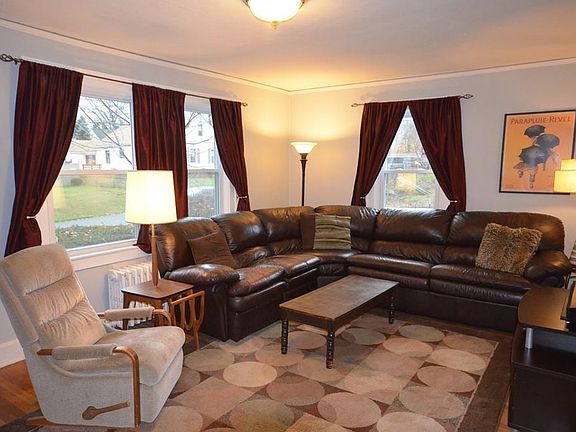 This spacious 1920's charmer has been lovingly updated throughout, including replacement windows. A list of updates and improvements is available. The open living area offers a large living room with a charming alcove, dining room with built in hutch, large kitchen with lots of storage space and newer appliances, a half bath, and an enclosed porch. Upstairs are 3 bedrooms, a 3-season porch, a large totally remodeled full bath with radiant heat in the tile floor. A walkup attic adds bonus space and the full basement offers additional work and storage areas. Enjoy the private, fenced back yard with room for a garden and play. The oversized detached 2 car garage is a bonus. The house is freshly painted throughout and move-in ready. Sited on a quiet side street just minutes to downtown. A must see!