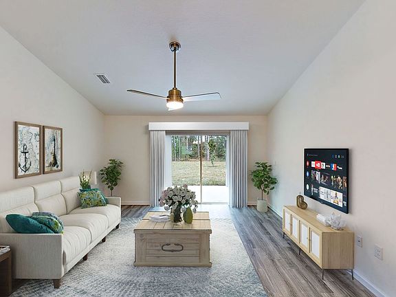 Welcome to this stunning 3-bedroom, 2-bathroom home located in the beautiful Palm Coast, FL. This home boasts a modern open floorplan, perfect for entertaining and everyday living. The kitchen is a chef's dream with solid surface countertops and top-of-the-line stainless steel appliances. The split floorplan offers privacy and convenience, with the master suite featuring a double vanity for added luxury. This home is also pet-friendly, welcoming all your furry friends. Experience the perfect blend of style, comfort, and functionality in this remarkable Palm Coast home.
