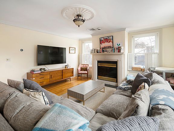 Ideally positioned at the bottom of Pleasant Street in the bustling town center, this penthouse duplex residence offers nearly 1,200 square feet of thoughtfully designed living space. Complete with a coveted off-street deeded parking spot, this property checks all the boxes. The first level invites you into a spacious living area with plenty of Charlestown charm from its dental crown moulding, traditional fireplace mantel, and ornate ceiling medallions. The kitchen features granite countertops, stainless steel appliances, with plenty of counter space for all your cooking needs. Flow directly into the formal dining room -- large enough to seat a table of 6. With sliders opening up to a private outdoor deck, this layout is optimal for indoor/outdoor entertaining. A convenient half bath on this level adds to the home's functionality for guests. Upstairs, the primary bedroom features a generous walk-in closet and a bay window, perfect for a WFH set-up. A well-sized guest bedroom and a full bathroom complete the second floor. Additional property features include in-unit washer dryer and central AC. Renter is responsible for gas, electric, cable & internet. Rent includes parking.