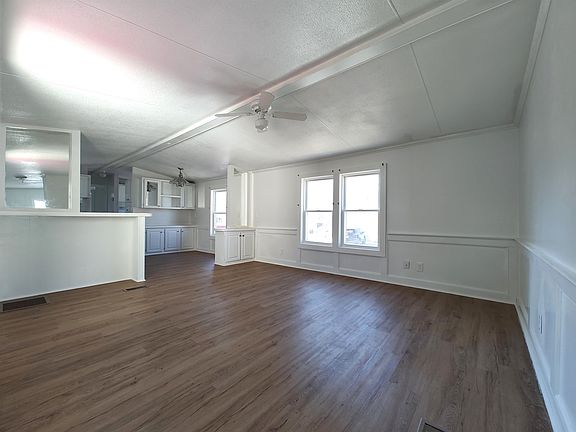 Check out all this home has to offer: 2 decks and a cover porch, large entry area with so many options from office to playroom, central A/C, separate laundry room, 2 full baths, vaulted ceilings, such an affordable living option with more space than most. Both bedrooms are large as is the living area. The primary bedroom has 1 full bath attached and a walk-in closet. The second full bath is across from the second bedroom. Freshly painted and cleaned, this home is move-in ready!