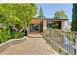 Chic & Inviting Showplace! Better than Townhouse/condo! Small yard with minimal maintenance and seclusion, covered patio, spa and heritage trees! Completely remodeled with hardwood floors, skylights, tunnel skylights, recessed lighting, dual pane windows! Kitchen with granite slab counters, gas stove. 4th bedroom off family room with separate entrance and 3rd full bath perfect for in-law, au pair. Extra storage! Great space!
