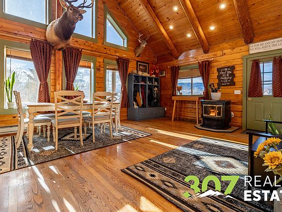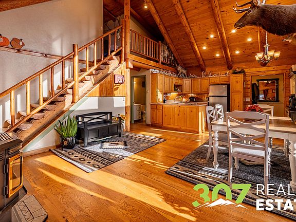 Experience true Western charm in this stunning home situated on one acre of land, perfectly positioned to capture panoramic views of Carter Mountain, the Southfork valley, and the Buffalo Bill Reservoir. These awe-inspiring mountain vistas are yours to enjoy every day. Your minutes from boating, fishing and enjoying the great outdoors. Step inside and be welcomed by the soaring A-frame living room with large windows that frame the incredible scenery. The room has beautiful wood floors and a gorgeous tongue-and-groove vaulted ceiling, that flows seamlessly into the open kitchen and dining area. Stay cozy with two pellet stoves upstairs and down. The home features two bedrooms on the main level, along with a full bath. The private loft serves as a serene master suite with its own 3/4 bath, with additional space for an office area. The finished basement adds for additional living, with one spacious bedroom and one bonus room with egress windows. A generous family room offers room to relax, while a large storage area provides endless possibilities. If you're an animal lover, there’s plenty of space to bring them along! This wonderful Wyoming property has tons to offer!