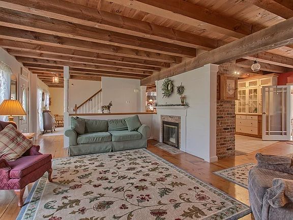NEW PRICE! MOTIVATED SELLER!! A unique opportunity for a classic car hobbyist, horse enthusiast or contractor featuring a 72x36 barn with a workshop on two plus acres of land with private trails adjacent to the property! Great for entertaining, this home offers an open kitchen with a five burner gas stove, large breakfast bar, fireplace and dining area; four season sun room with wood stove, fireplaced living; dining room with beamed ceilings, first floor bath. The second floor features a master bedroom suite with wood fireplace, full master bath with double pedestal sinks, step in ceramic shower and a jetted tub perfect for relaxing after a long day. Second floor laundry, three bedrooms and a full bath completes the second floor. Two additional rooms on the third floor. Additional amenities are an in-ground pool (which Seller will remove) pond and screened-in porch. Great location for commuters - right off of Rte. 119, minutes from Rte.495.